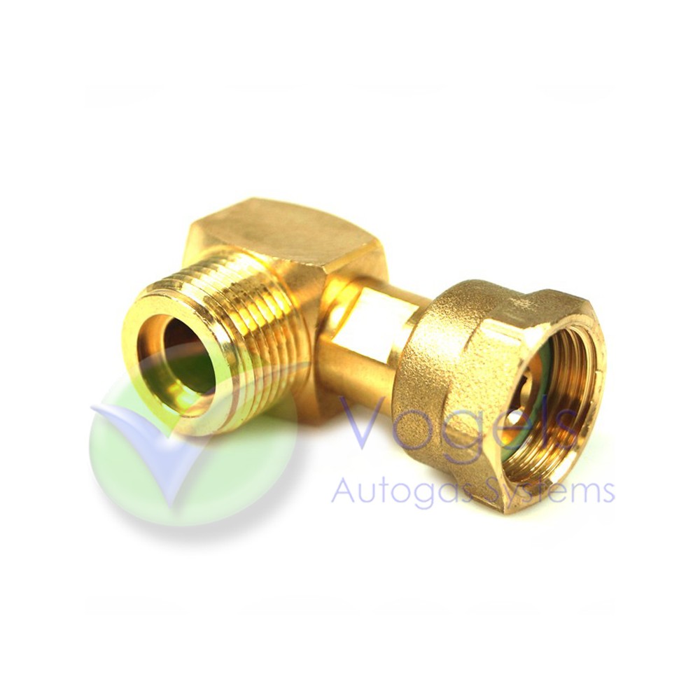 Kupplungsstück 90° rechtwinklig mit AG M20x1,5 Außengewinde x M20x1,5 ÜM Innengewinde Anschluss