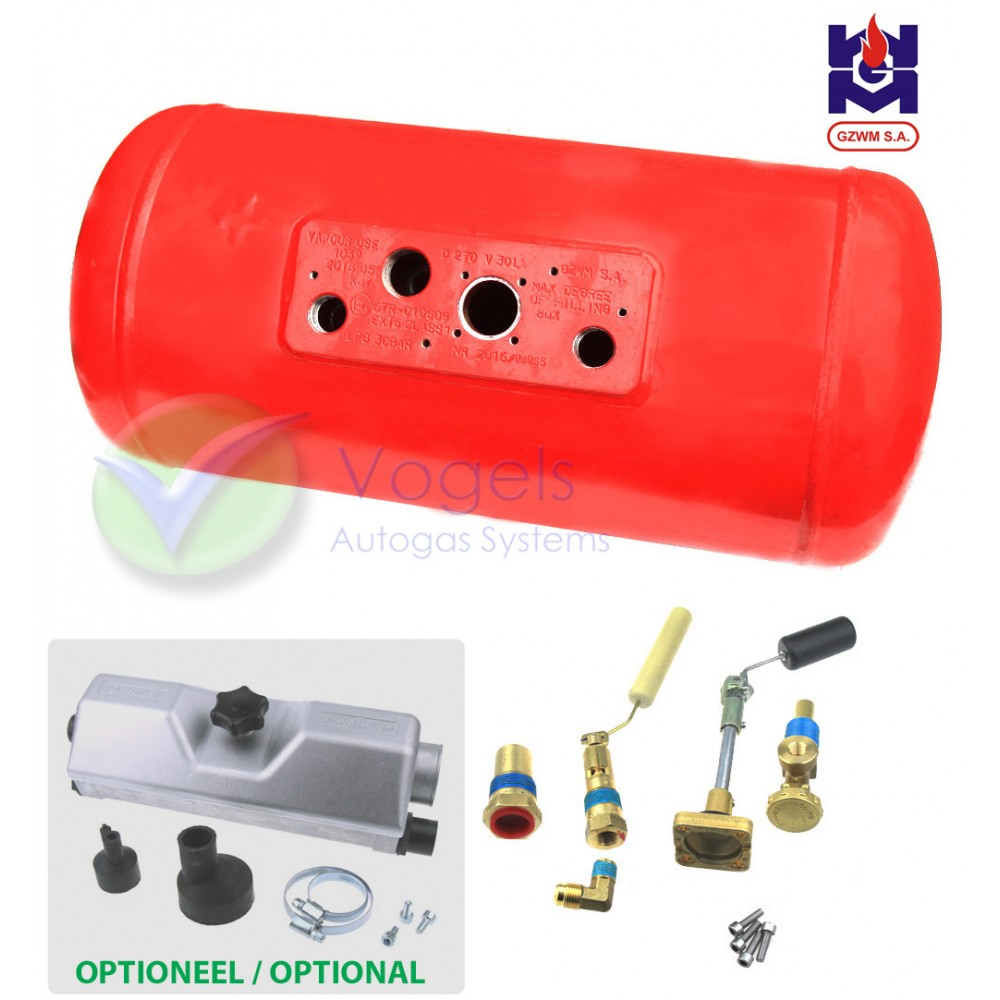 GZWM Zylindrischer LPG-Brenngastank 4-Loch 20L (Ø200x720) - Inkl. Ventile