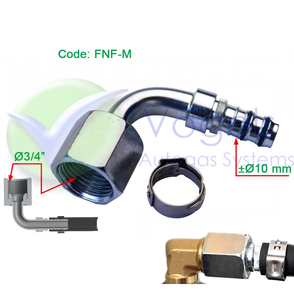 SF-Fitting XD-6 FNF-M 1/2" Flare 90° + Oetiker-Rohrklemme (LPG-Füllteil)