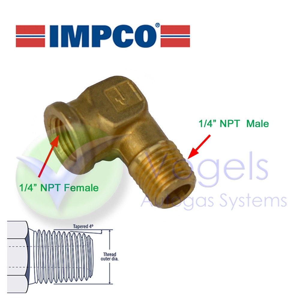 IMPCO brass coupling angled 1/4” NPT-Male x 1/4” NPT-Female