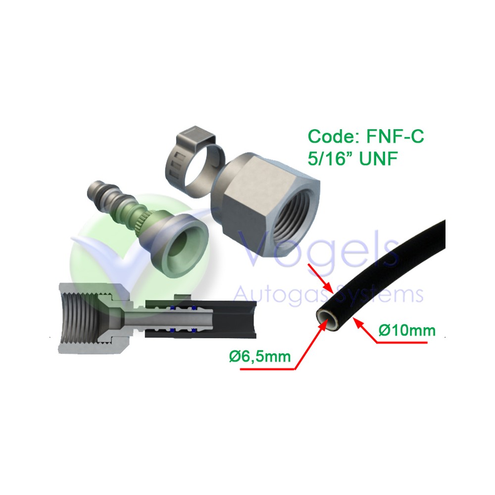 - 1 x FNF-C 5/16" Flare + Oetiker leidingklem